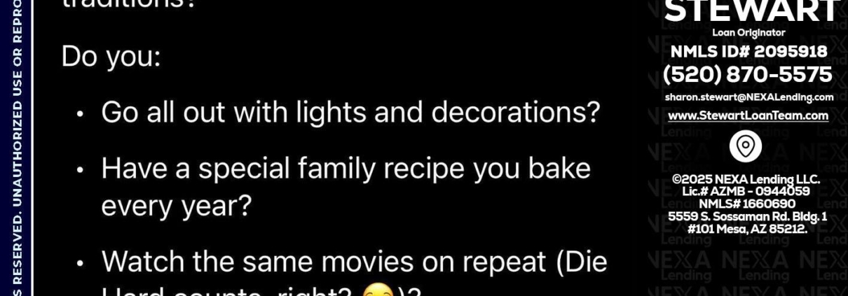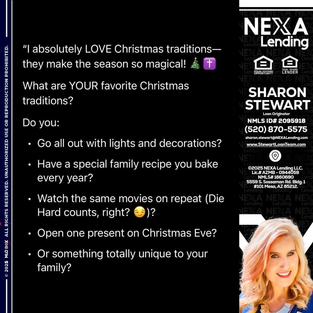 Hi, my name is Sharon Stewart. I’m a Loan Officer with NEXA Lending LLC., offering personalized mortgage solutions, fast customized quotes, great rates and service with integrity.