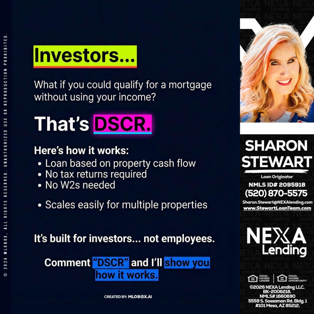 Hi, my name is Sharon Stewart. I’m a Loan Officer with NEXA Lending LLC., offering personalized mortgage solutions, fast customized quotes, great rates and service with integrity.