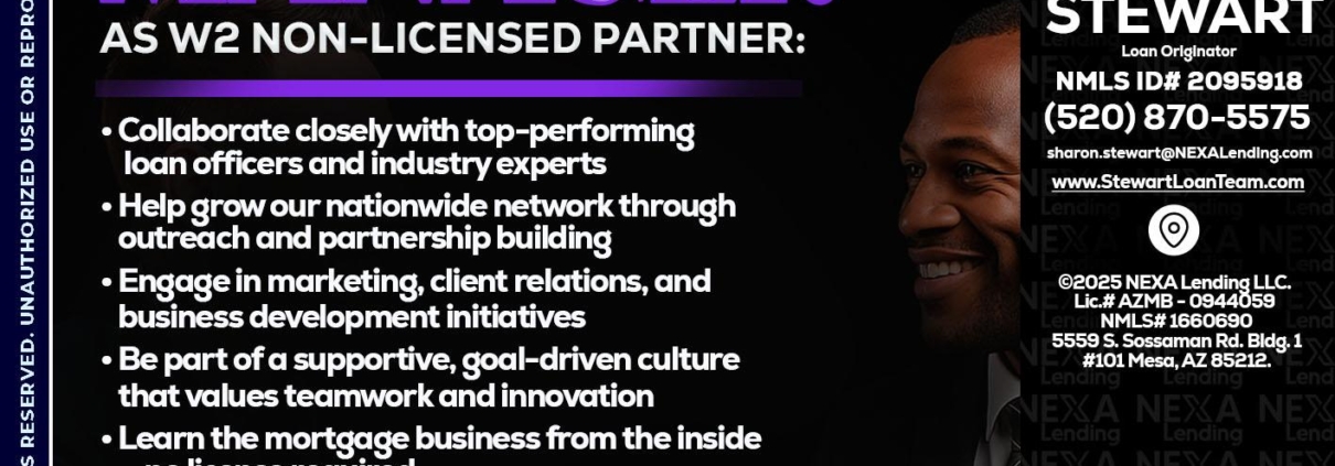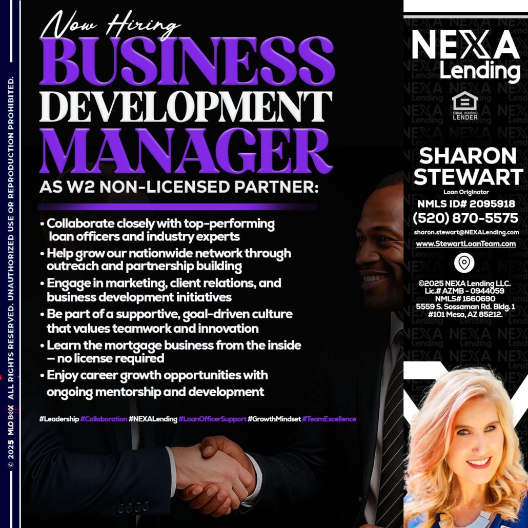 Hi, my name is Sharon Stewart. I’m a Loan Officer with NEXA Mortgage LLC., offering personalized mortgage solutions, fast customized quotes, great rates and service with integrity.